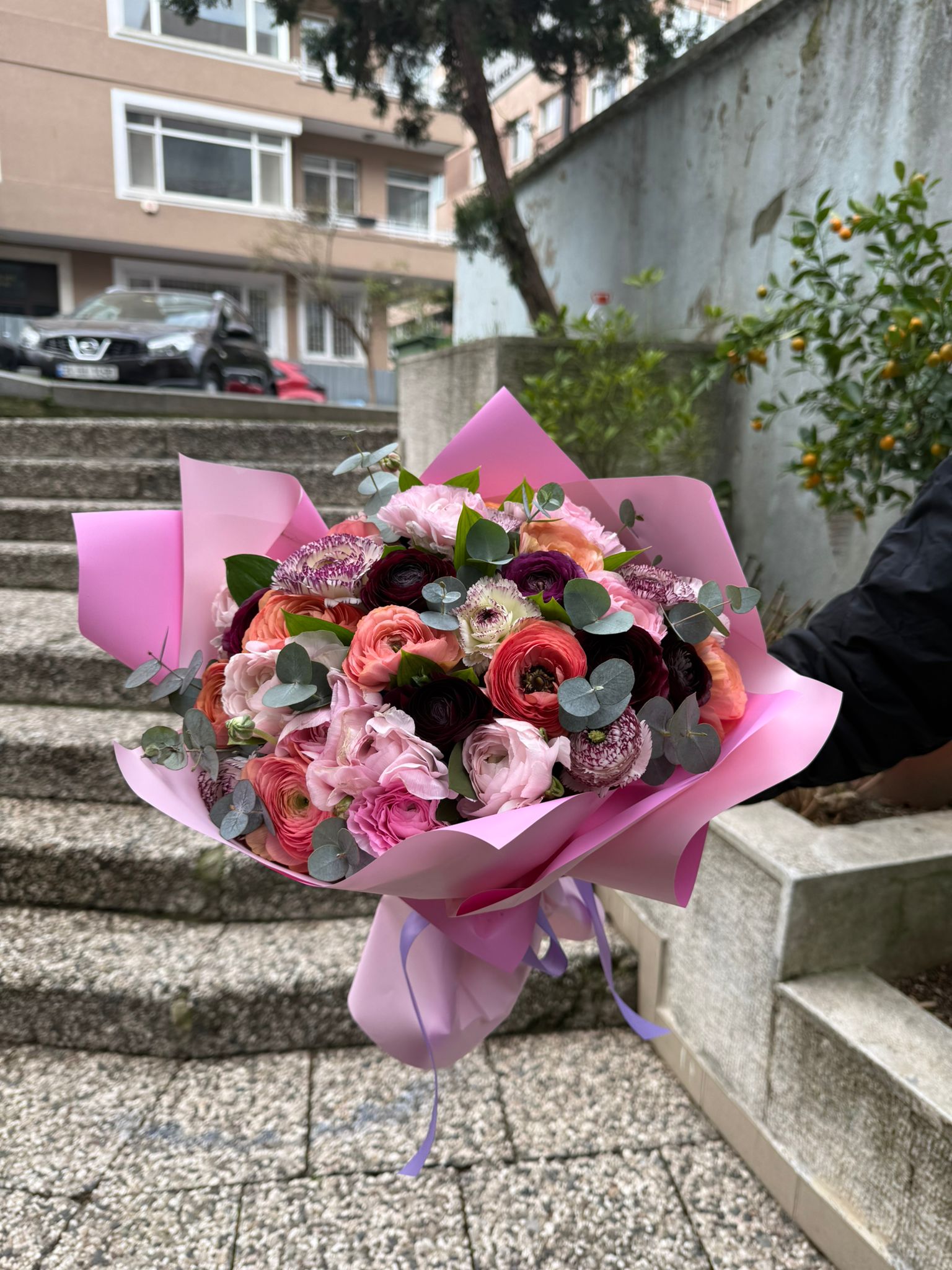 Her bukette taze çiçeklerle, özenle hazırlanır