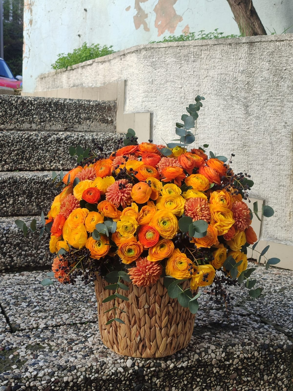 Turuncu & Sarı Eren Gül Aranjmanı, enerjisi yüksek renkleriyle bulunduğu ortama sıcaklık ve neşe katar. Canlı turuncu ve sarı tonlardaki eren güller, uyumlu çiçek detayları ve doğal yeşillikler ile el örgüsü sepet içerisinde özenle hazırlanmıştır. Pozitif duyguları, mutluluğu ve yeni başlangıçları simgeleyen bu özel aranjman; tebrik, teşekkür ya da sevdiklerinize içten bir gülümseme armağan etmek için mükemmel bir tercihtir.